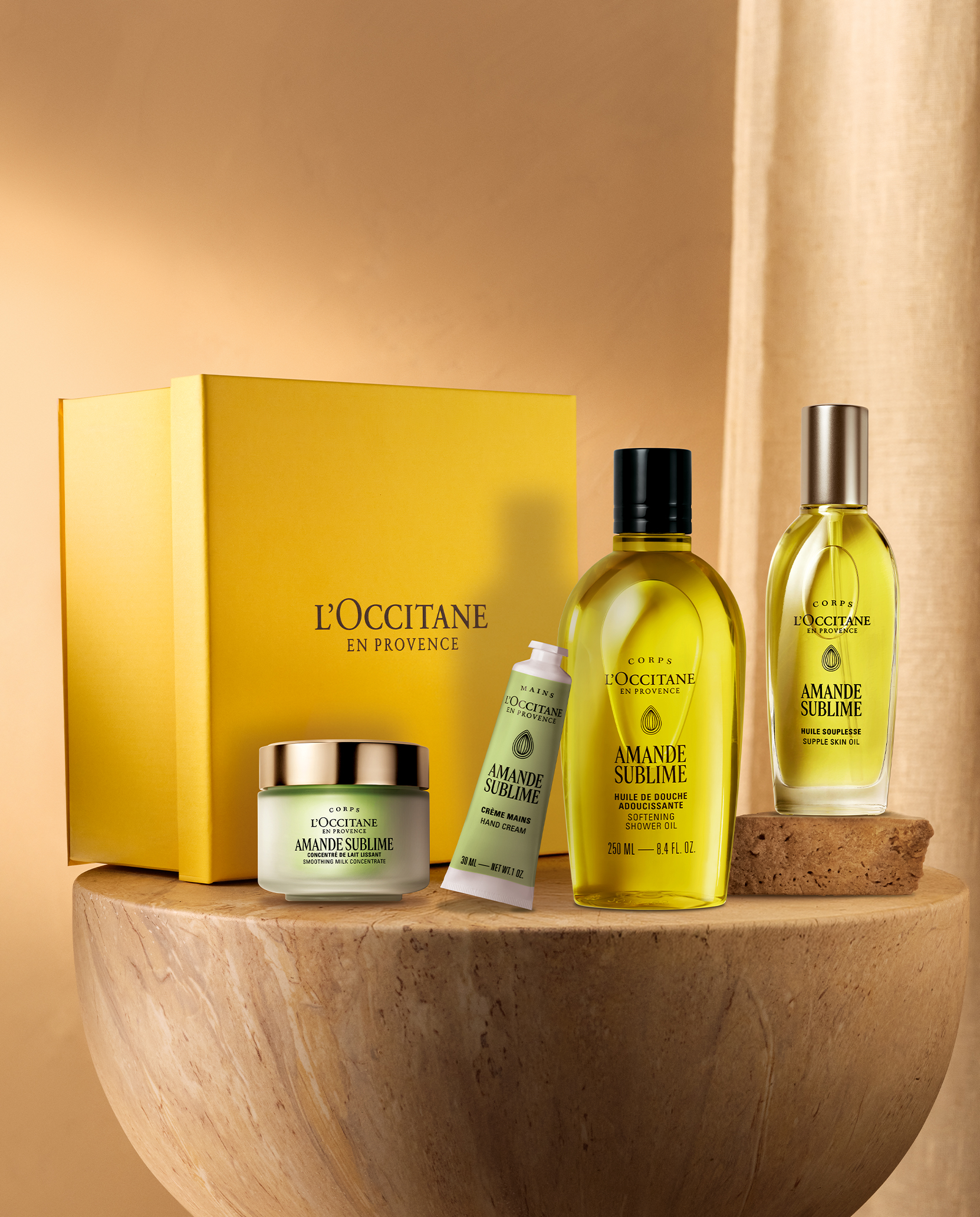 تُقدم مجموعة اللوز اليوم تحت اسم جديد؛ (أماند سوبليم)، وقد تم تجديدها من خلال تحسينات في التغليف مصممة للحدّ من الأثر البيئي مع الحفاظ على جوهر بروفانس. أُعيد تصميم كل تفصيل بعناية مع الحفاظ على التركيبات دون تغيير، وتم تعزيزها بزيت اللوز لتغذية البشرة وتنعيمها وإضفاء الجمال عليها.